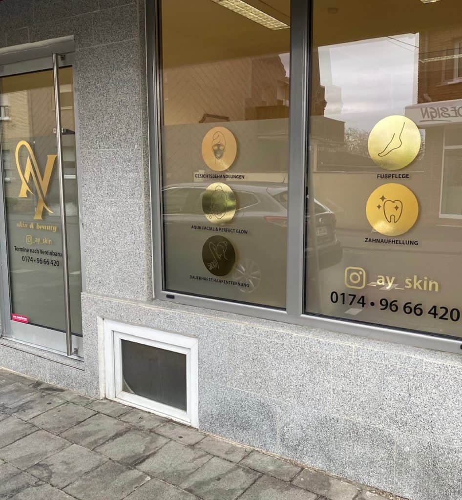 Avec nos icônes de vitrine élégantes et glamour dans des tons extravagants d’or métallique ou d’argent métallique, vous êtes sûr d’avoir un deuxième regard de la part des clients de passage ! Au premier coup d’œil, vos clients reconnaissent les traitements que vous proposez et l’aspect glamour fait déjà sentir à vos clients une touche de luxe qu’ils recevront chez vous. Si vous avez un souhait individuel concernant une icône exceptionnelle qui s’applique spécifiquement à votre gamme de services, n’hésitez pas à nous contacter ! BeautyWerbeProfi vous donnera l’image que vous méritez en raison de vos services particuliers !