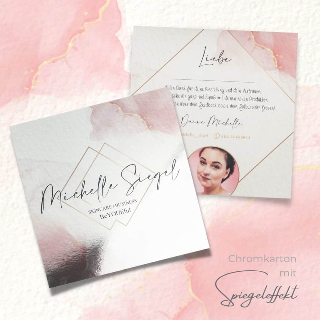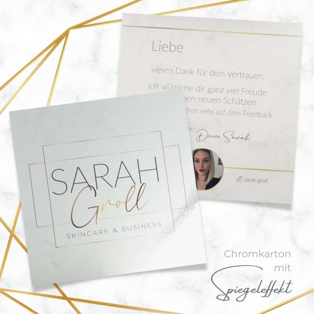Vos clients esthétiques apprécieront, les yeux brillants, les remerciements que vous leur adresserez après un traitement réussi. N’oubliez pas : la publicité est essentielle ! Et avec l’effet miroir du chrome, vos clients se verront reflétés sur le flyer après chaque traitement, avec un résultat exceptionnel.