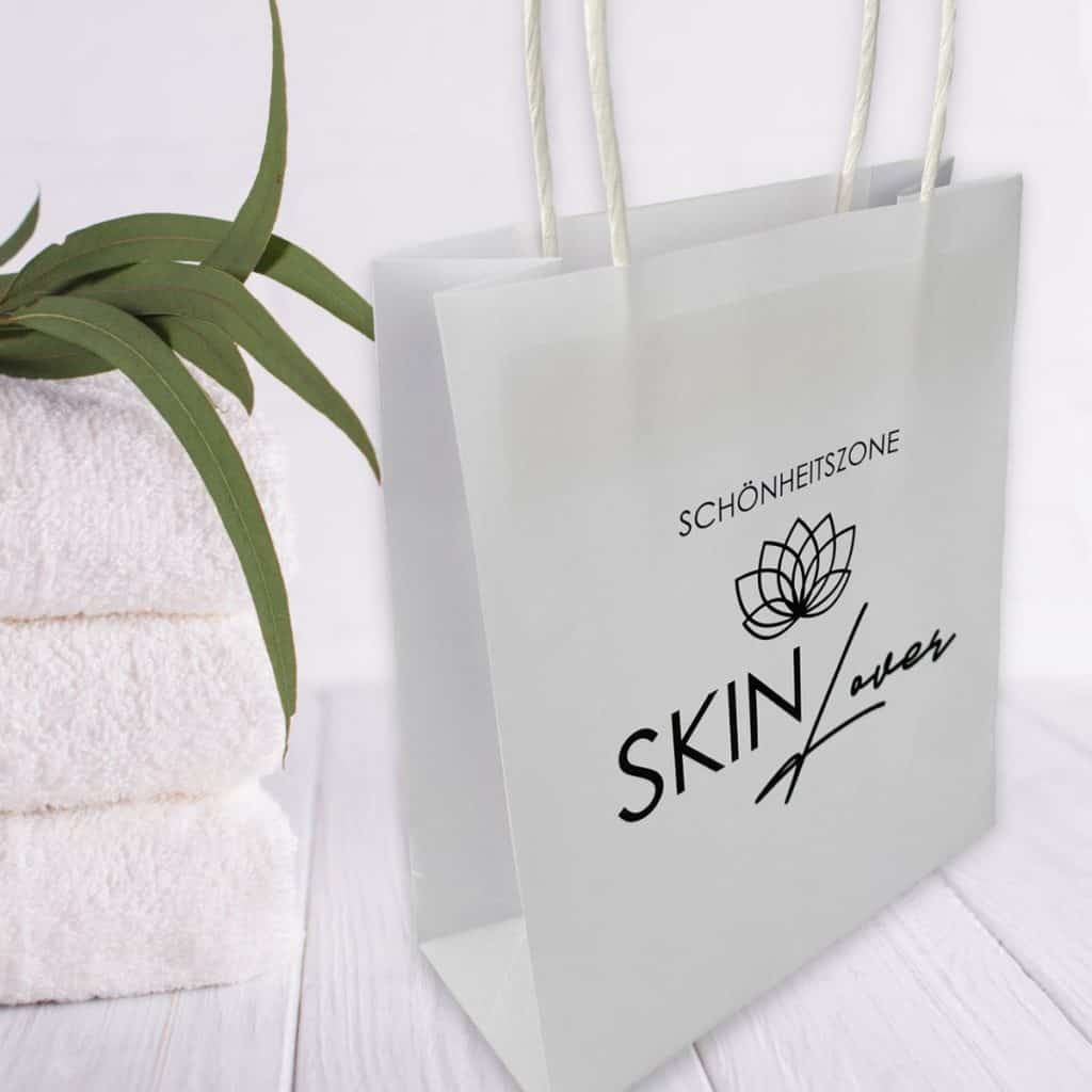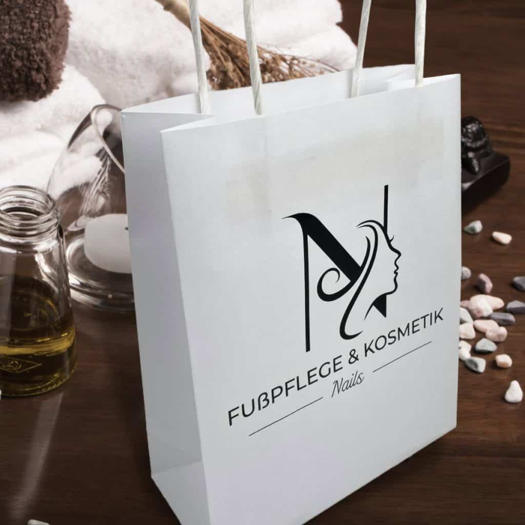 - Sac de transport de haute qualité en papier kraft avec votre propre design de studio dans la taille 18×22,5x8cm
