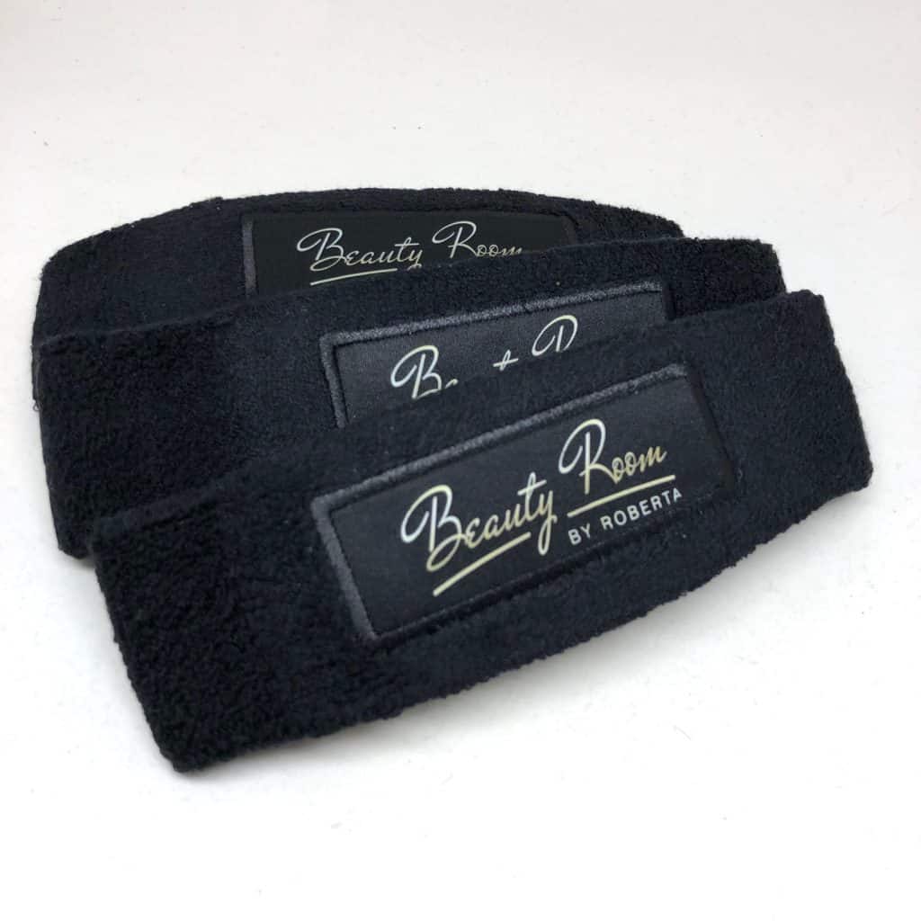 Le design individuel du bandeau ne s’intègre pas seulement dans votre stratégie marketing, il est également très agréable à porter pour votre client et protège en outre les cheveux de votre client. De plus, il permet à la styliste de cils de poser délicatement ses mains sur le bandeau pendant qu’elle termine son travail.