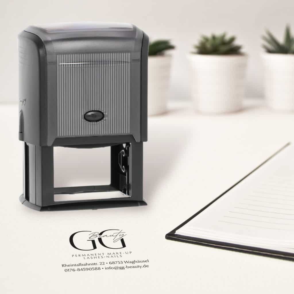 Pour la conception, il y a quelques indications indispensables, même si elles ne sont pas imposées par la loi, que nous vous indiquerons bien sûr volontiers. Mais le tampon est également indispensable à votre stratégie marketing, car votre logo peut également briller dans de nombreuses couleurs différentes. Et qui ne se réjouit pas de pouvoir apposer VOTRE propre tampon sous chacun de vos bons de pédicure ou de blanchiment des dents ?