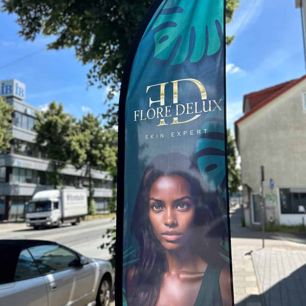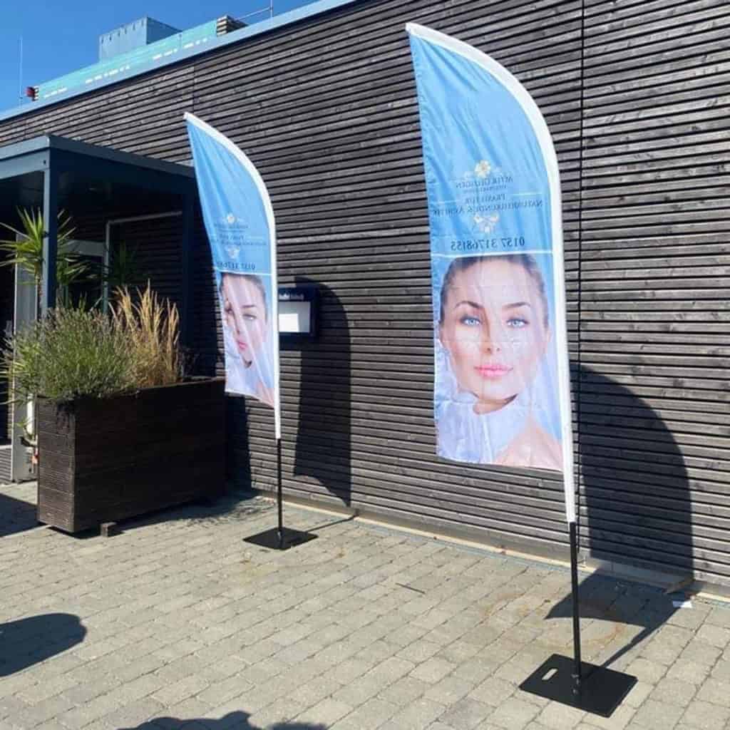 Un drapeau extérieur avec votre logo de beauté personnalisé sur un mur peut faire des merveilles ! La publicité sur les drapeaux est encore plus efficace pour attirer l’attention sur votre institut de beauté. En effet, le flottement et le souffle d’un beach flag renforcent encore l’effet publicitaire. Grâce à un investissement relativement peu coûteux, vous ferez un grand pas vers le succès encore plus rapidement avec votre salon de tatouage.